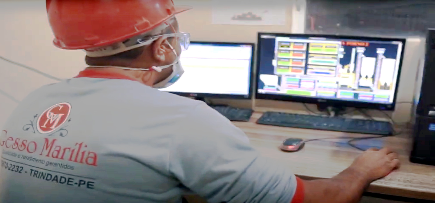 Já em na área de produção, a gipsita entra em processo de calcinação. Ela é britada em ambiente controlado, moída e desidratada em temperaturas ideais para remoção das impurezas.